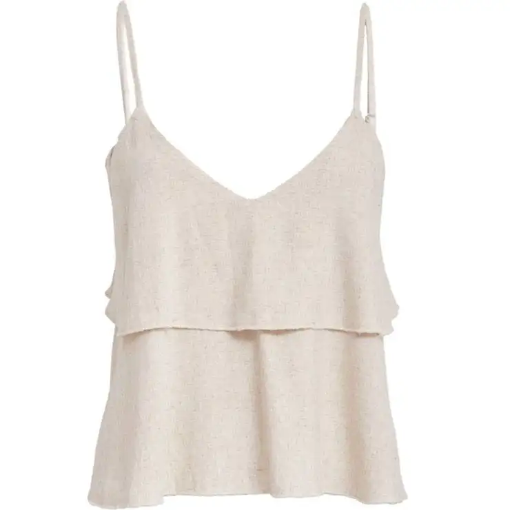 Camiseta tipo top elaborada en viscosa y lino. Con tirante fino. Escote en V. Detalle de volantes.