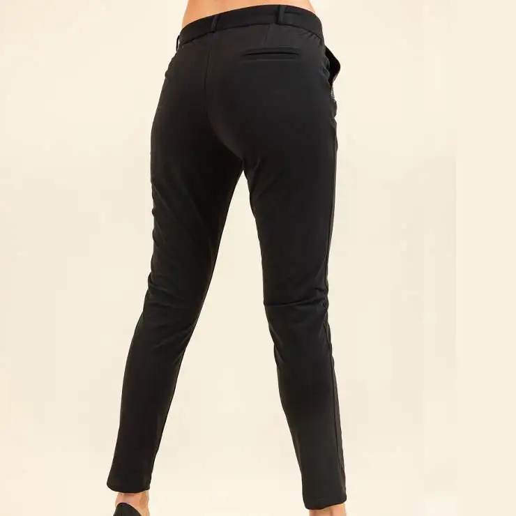 Pantalón elaboradoro en poliamida cepillada en color negro con detalles en plata. Ajuste clásico. Cierre con botón y cremallera.