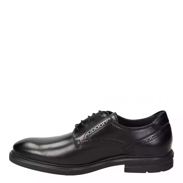 Zapato de la marca Fluchos modelo Belgas F630 en color negro. Zapato tipo blucher en napa lisa con detalle troquelado en la pala y en los laterales. Cierre con cordones. Suela de goma EVA. Plantilla extraíble.