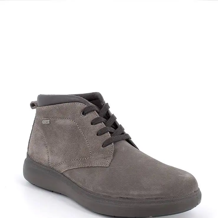 Botín de ante. Cierre con cordones. Suela de goma termoplástica de 2,5 cm. Forro interior imactex. Plantilla acolchada y extraíble. Plantar anatómico.