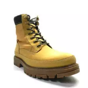 Botín de la marca Levi’s, modelo Torsten en color mostaza. Botín de piel de nobuk resistente a las inclemencias del tiempo, con forro Woolmark Felt y plantilla OrthoLite. Suela de goma con buen agarre. Cierre de cordones estilo montaña.