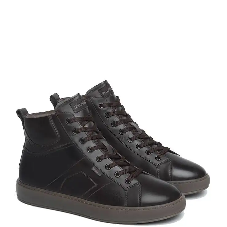 Botines deportivos elaboradas en piel. Cierre con cordones y cremallera lateral interna. Plantilla de piel. Suela de goma de 3 cm de altura.