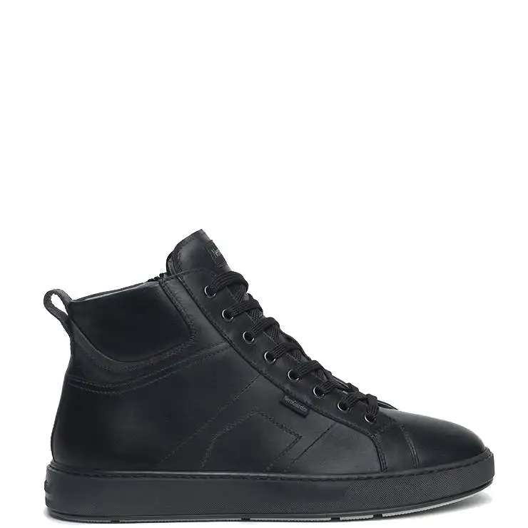 Botines deportivos elaboradas en piel. Cierre con cordones y cremallera lateral interna. Plantilla de piel. Suela de goma de 3 cm de altura.