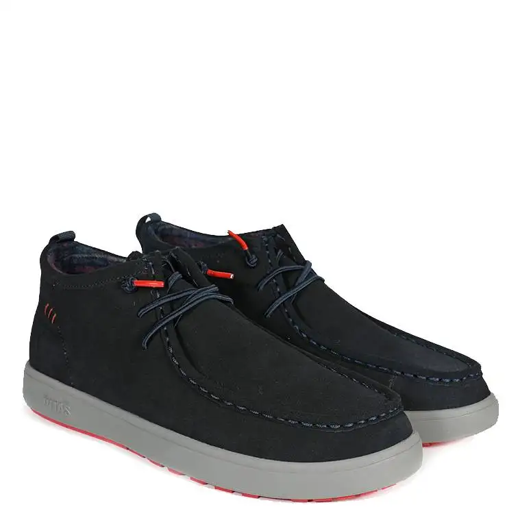 Botín de corte wallabi en serraje hidrofugado repelente al agua. Cierre con cordones elásticos para mayor comodidad. Suela Coast de goma EVA ultralight antideslizante. Forro textil. Plantilla extraíble de Pitas-Comfort con planta de piel.