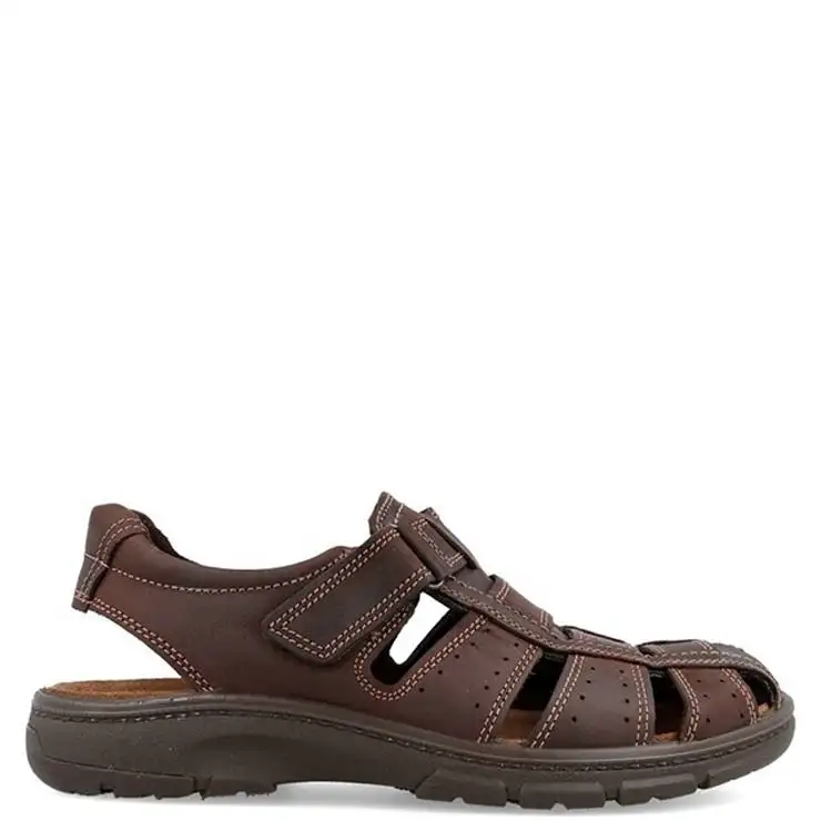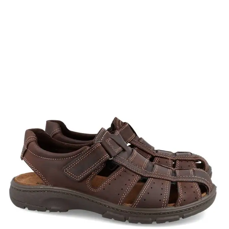Sandalia cerrada elaborada en cuero natural suave. Forro transpirable. Plantilla acolchada. Suela de PU ligera y flexible. Cierre con velcro.