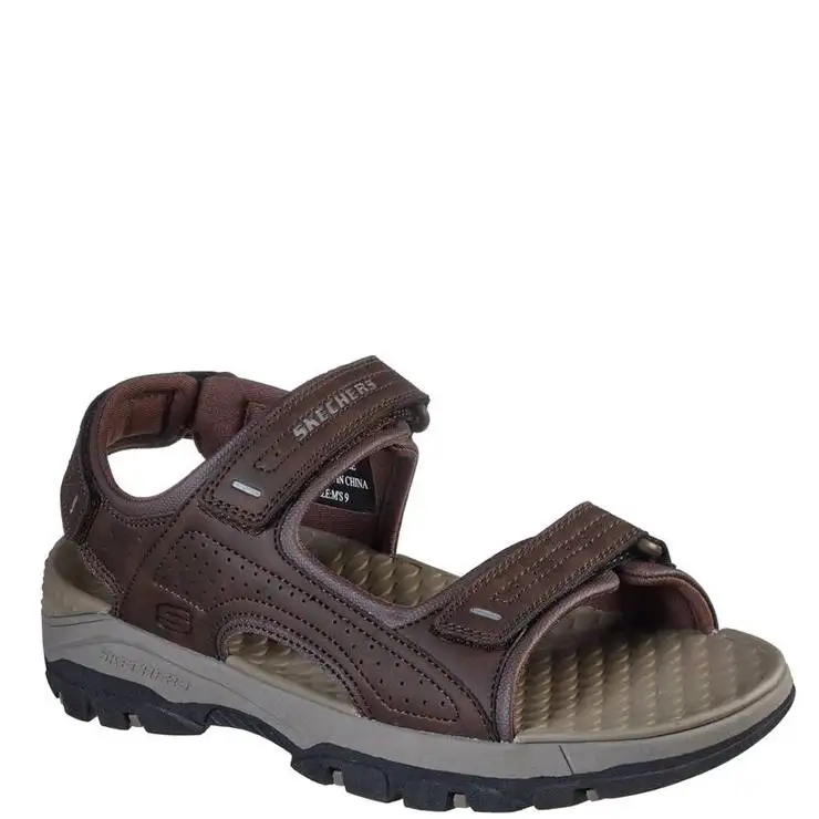 Sandalia de la marca Skechers modelo 204105 en color marrón. Sandalia deportiva con tiras en la puntera, el empeine y el talón. Tejido sintético duradero liso. Plantilla acolchada Luxe Foam. Entresuela amortiguada y suela flexible. Cierre ajustable de velcro.