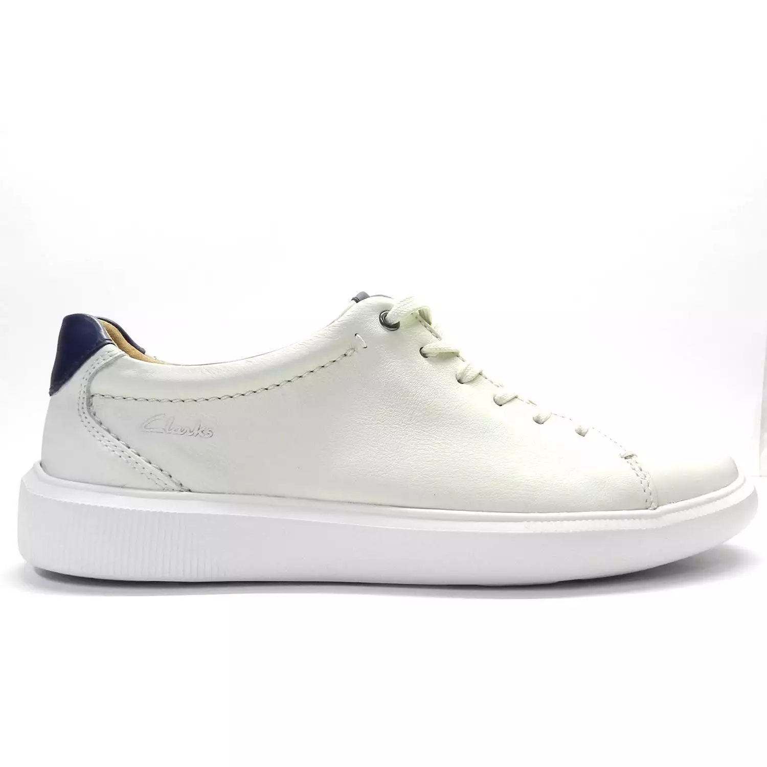 Sneaker de hombre de la marca Clarks, modelo Cambro Low en color hielo. Zapatilla deportiva con cordones de piel sin forro, suela Eva y plantilla extraíble Ortholite® perfecta para el uso diario.
