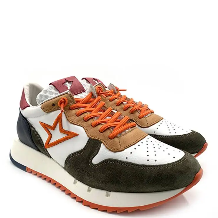 Zapatillas deportivas elaboradas en combinación de materiales y colores. Suela de goma. Plantilla de piel.