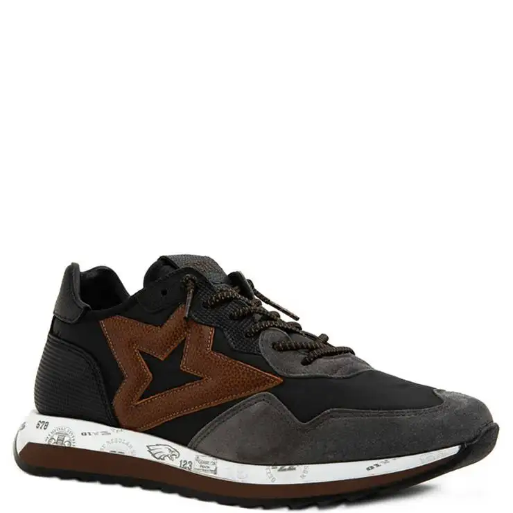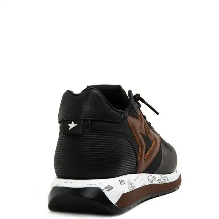 Zapatillas urbanas elaboradas en piel y nylon en combinación de texturas y tonos. Cierre de cordones elásticos. Suela de goma de 3cm. Plantilla extraíble. Cierre con cordones elásticos. Detalle de estrella en relieve en marrón.
