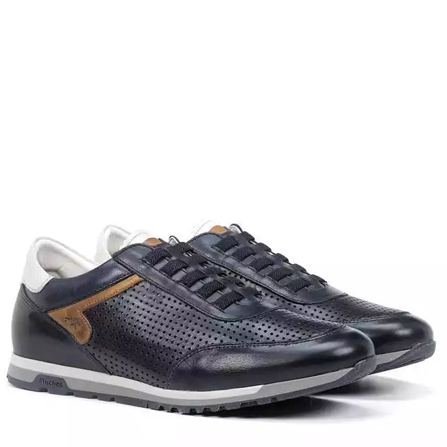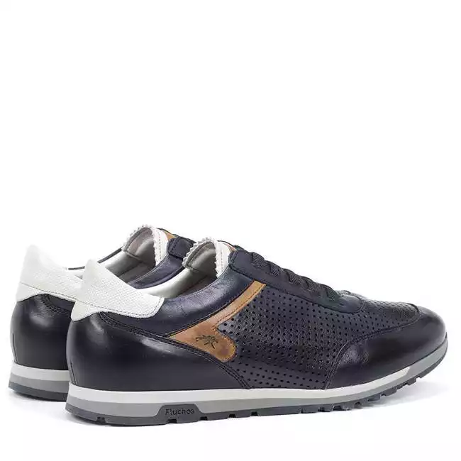 Zapatillas de la marca Fluchos, modelo F1189 en color azul. Zapatillas deportivas elaboradas en piel, cierre con cordones elásticos, suela de goma termoplástica, plantilla extraíble.