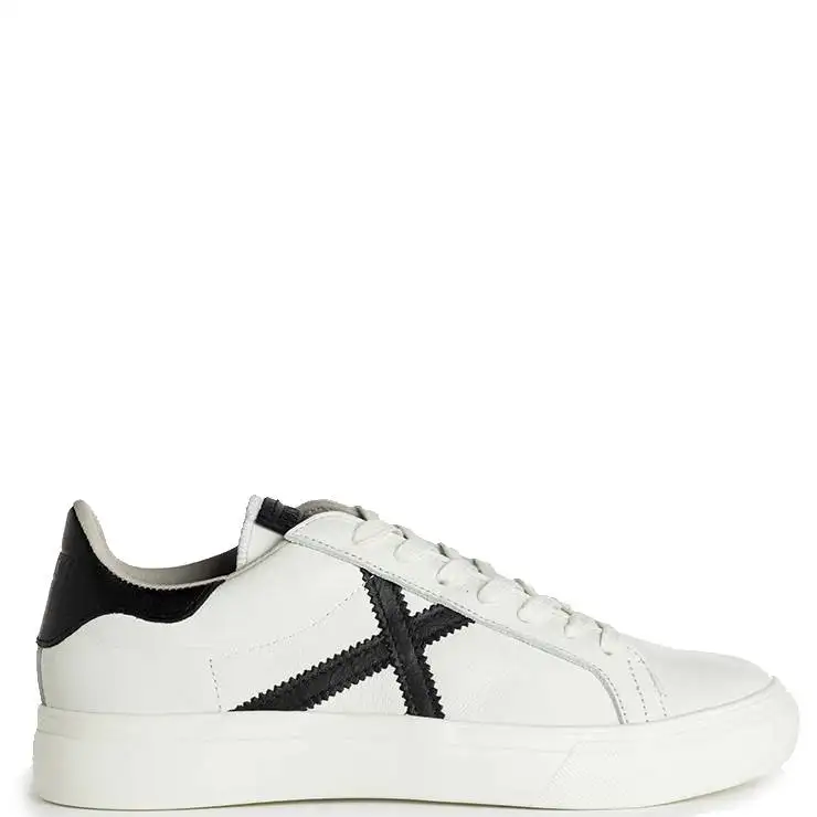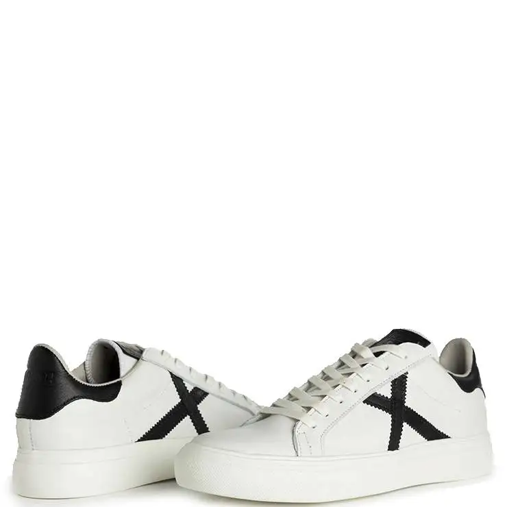 Zapatilla deportiva en tejido sintético color blanco con detalles en negro. Cierre con cordones. Suela de goma blanca.