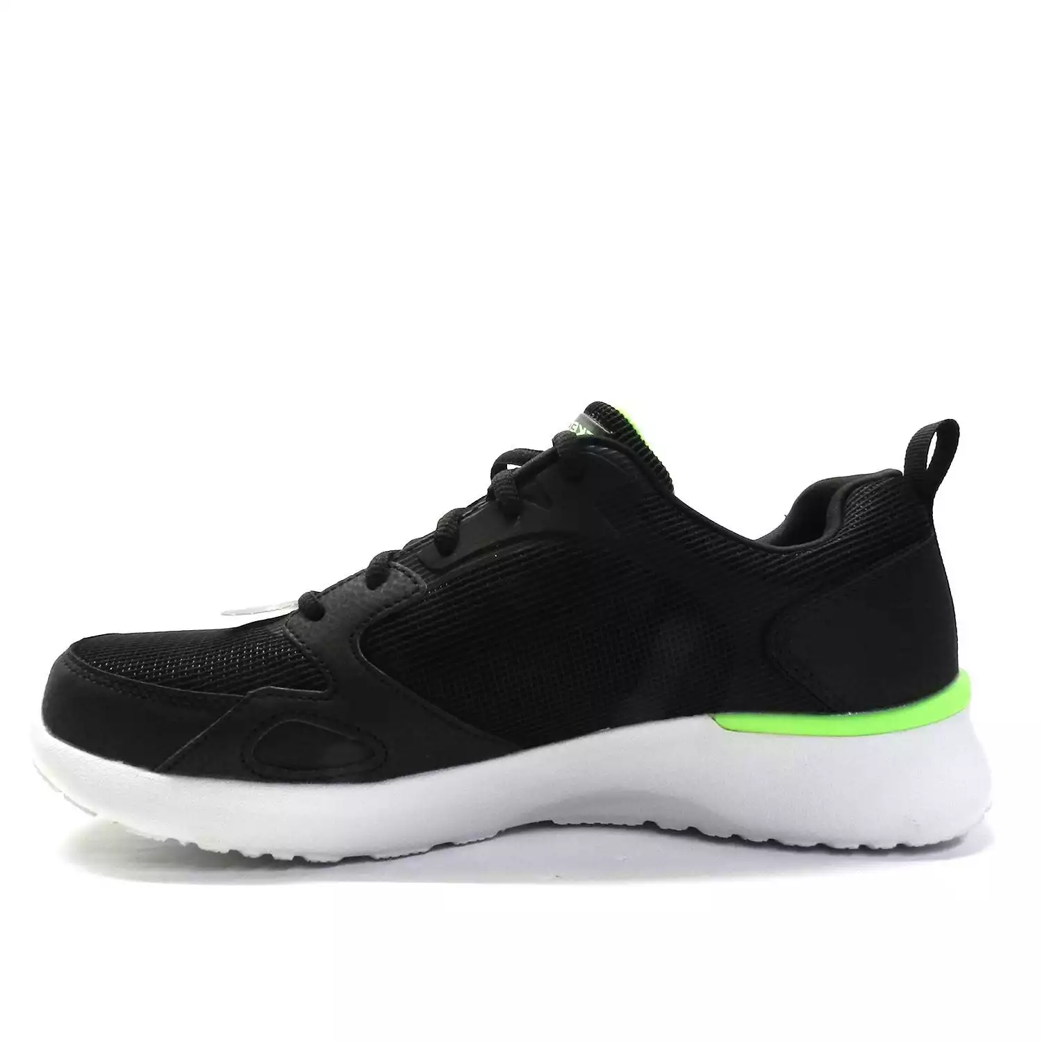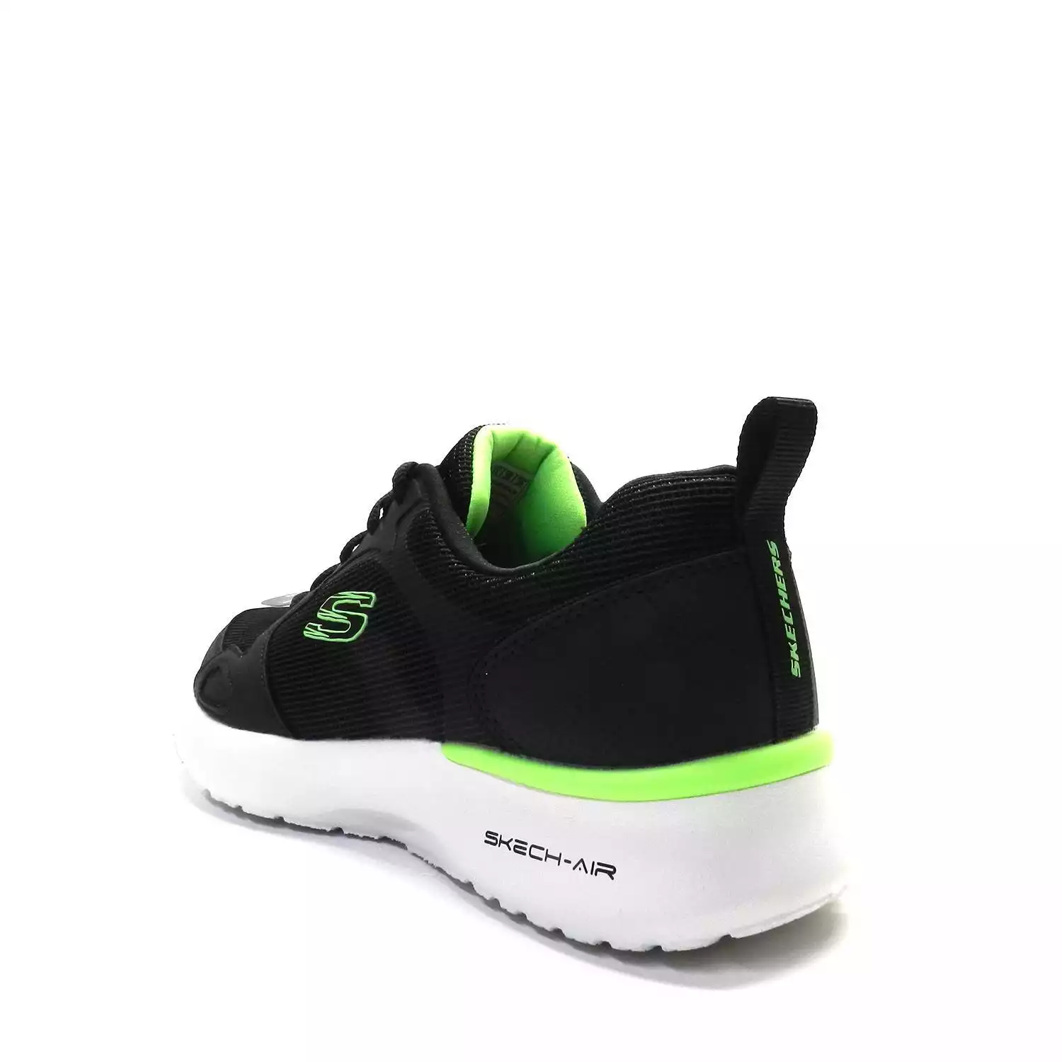 Zapatillas de la marca Skechers, modelo Air Dynamight en color negro. Zapatillas deportivas elaboradas en tejido sintético y malla. Plantilla de Memory Foam con amortiguación, mediasuela con cámara de aire Skech-Air, suela de goma flexible con tracción. Talón de 3,2 cm