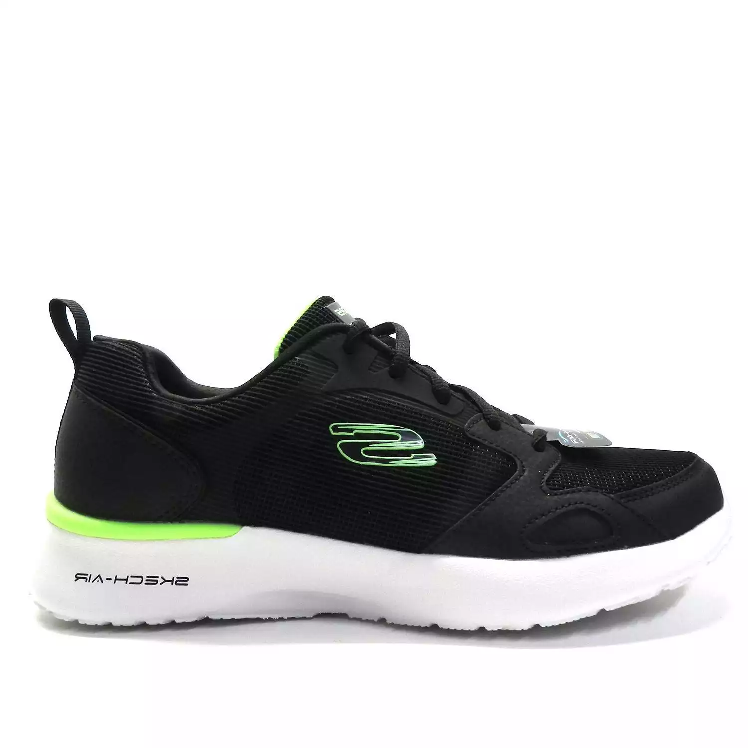 Zapatillas de la marca Skechers, modelo Air Dynamight en color negro. Zapatillas deportivas elaboradas en tejido sintético y malla. Plantilla de Memory Foam con amortiguación, mediasuela con cámara de aire Skech-Air, suela de goma flexible con tracción. Talón de 3,2 cm