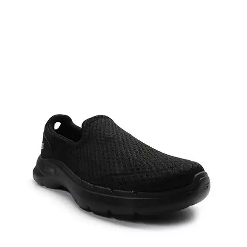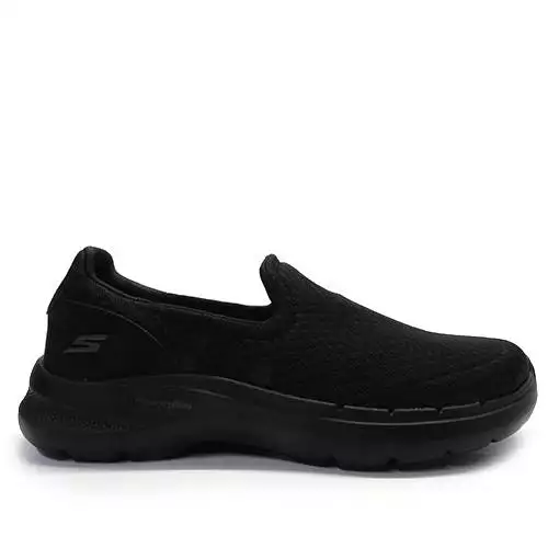 Zapatillas de la marca Skechers, modelo GoWalk 6 Motley en color negro. Zapatillas deportivas elaboradas en malla deportiva, media suela ligera con amortiguación Ultra Go®, la plantilla Goga Mat™ y la Hyper Pillar Technology® de alto impulso para mayor soporte.
