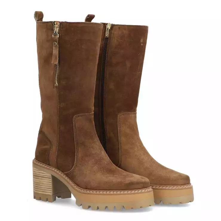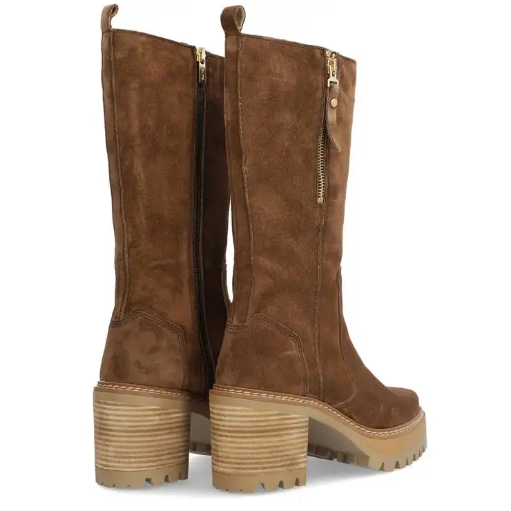 Bota de la marca Alpe modelo New Amelie en color taupe. Bota elaborada en piel (baby silk) con puntera redonda, cierre mediante cremallera. Plantilla textil. Suela antideslizante con tacón de 7 cm.