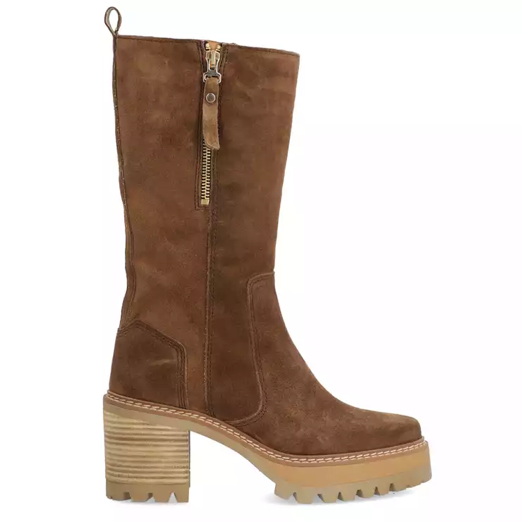 Bota de la marca Alpe modelo New Amelie en color taupe. Bota elaborada en piel (baby silk) con puntera redonda, cierre mediante cremallera. Plantilla textil. Suela antideslizante con tacón de 7 cm.