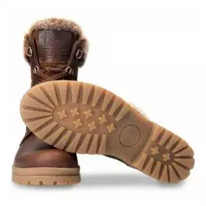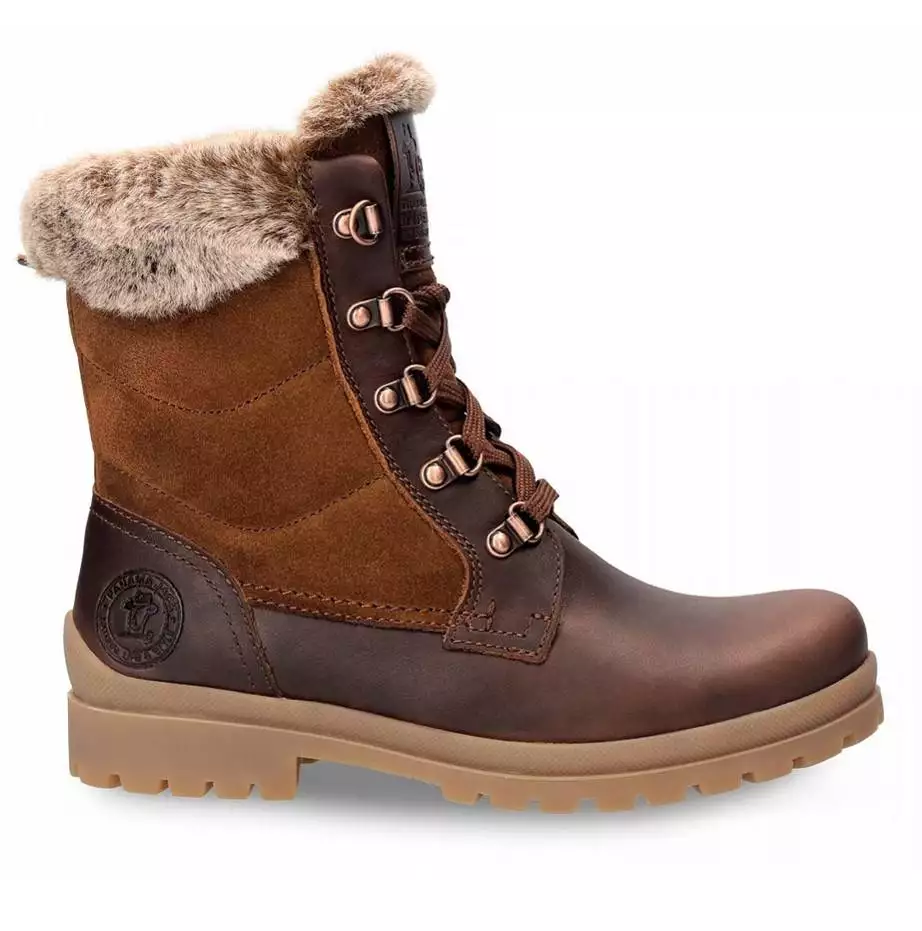 Bota de la marca Panama Jack de mujer plana con cordones, realizada en piel Waterproof de color cuero que repele el agua. Esta bota tiene forro interior de pelo, perfecto para mantener los pies calientes en días de frío. Plantilla anatómica extraíble y suela de caucho natural flexible y resistente. Altura caña: 20 cm.