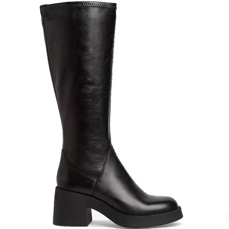 Bota alta elaborada en piel y material elástico. Suela de goma con tacón bloque de 7,5 cm de altura. Plantilla con tecnología Touch-it que se adapta perfectamente a la forma del pie. Caña elástica que garantiza un ajuste óptimo. Cierre con cremallera lateral.