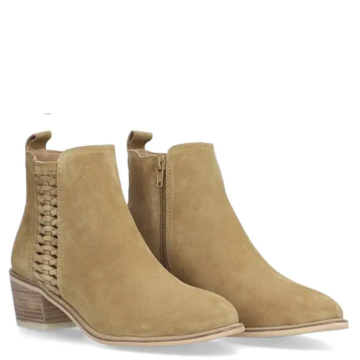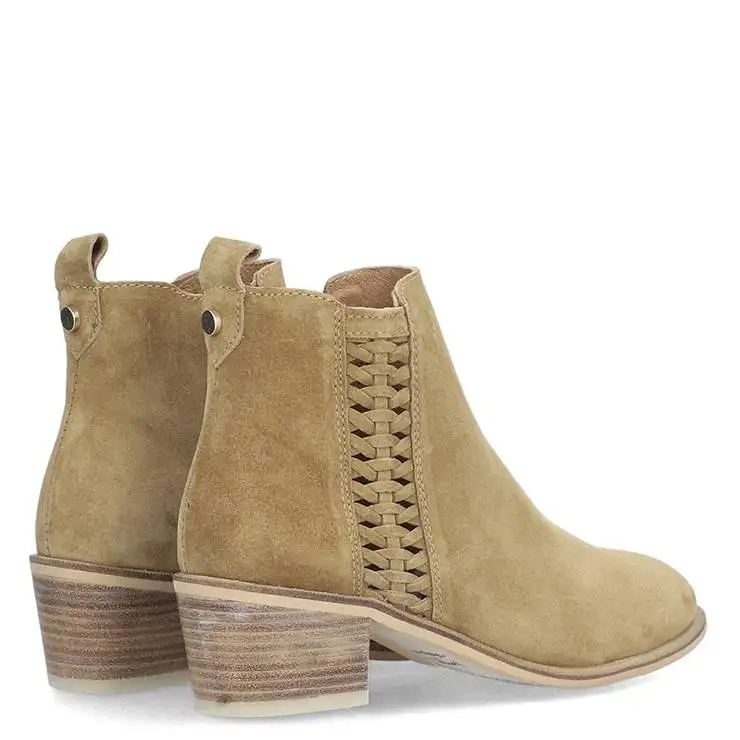 Botines tipo cowboy elaborados en piel serraje con detalle calado en el lateral.