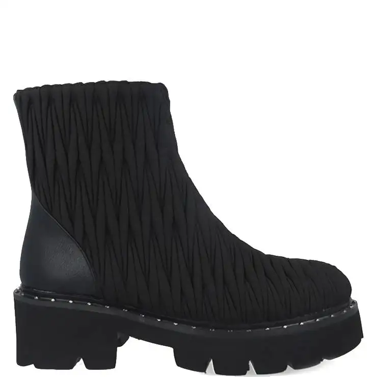 Botín elaborado en tejido acolchado. Suela de goma dentada de 4 cm de altura. Cierre con cremallera lateral interna.