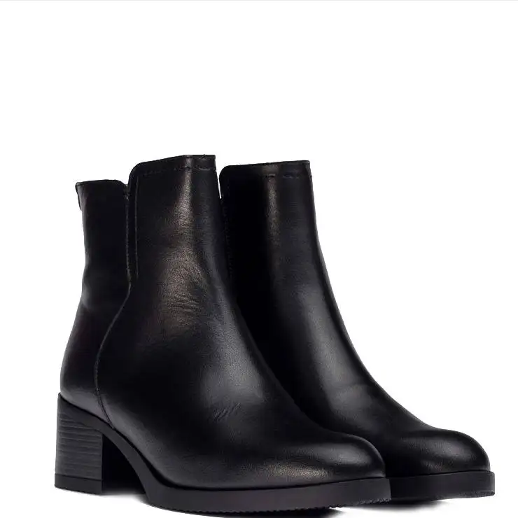 Botín elaborado en piel lisa. Punta redonda y cierre mediante cremallera lateral. Suela de goma EVA flexible. Plantilla interior de MemoryGel. Tacón de 5 cm de altura.