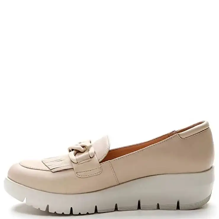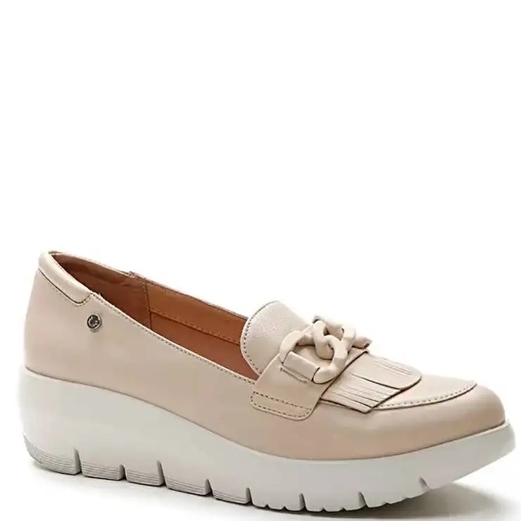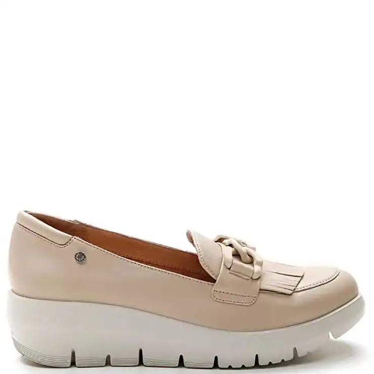 Mocasín en ante velour con detalle de eslabón y flecos en monocolor. Suela dentada de 4,5 cm de altura de goma EVA que incorpora tecnología Blusoft®.