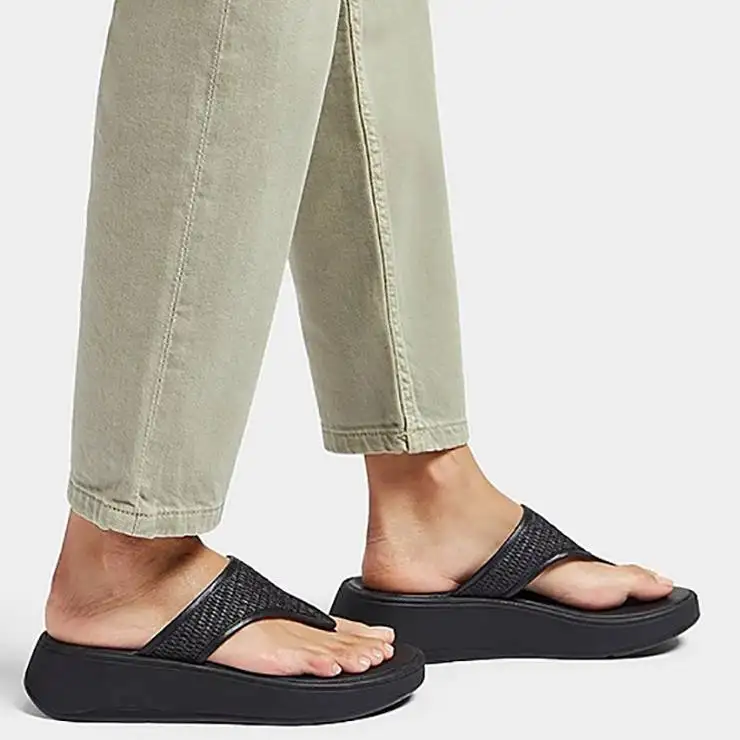 Sandalia con tira en el dedo elaboradas en tejido de rafia sintética transpirable, con un ribete de cuero al tono. Entresuela Microwobbleboard™ de triple densidad. Suela de goma antideslizante.