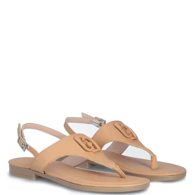 Sandalia plana de estilo bikini. Cierre ajustable con hebilla. Mini tacón ancho de 2 cm y suela de goma. Detalle de logo en el empeine.
