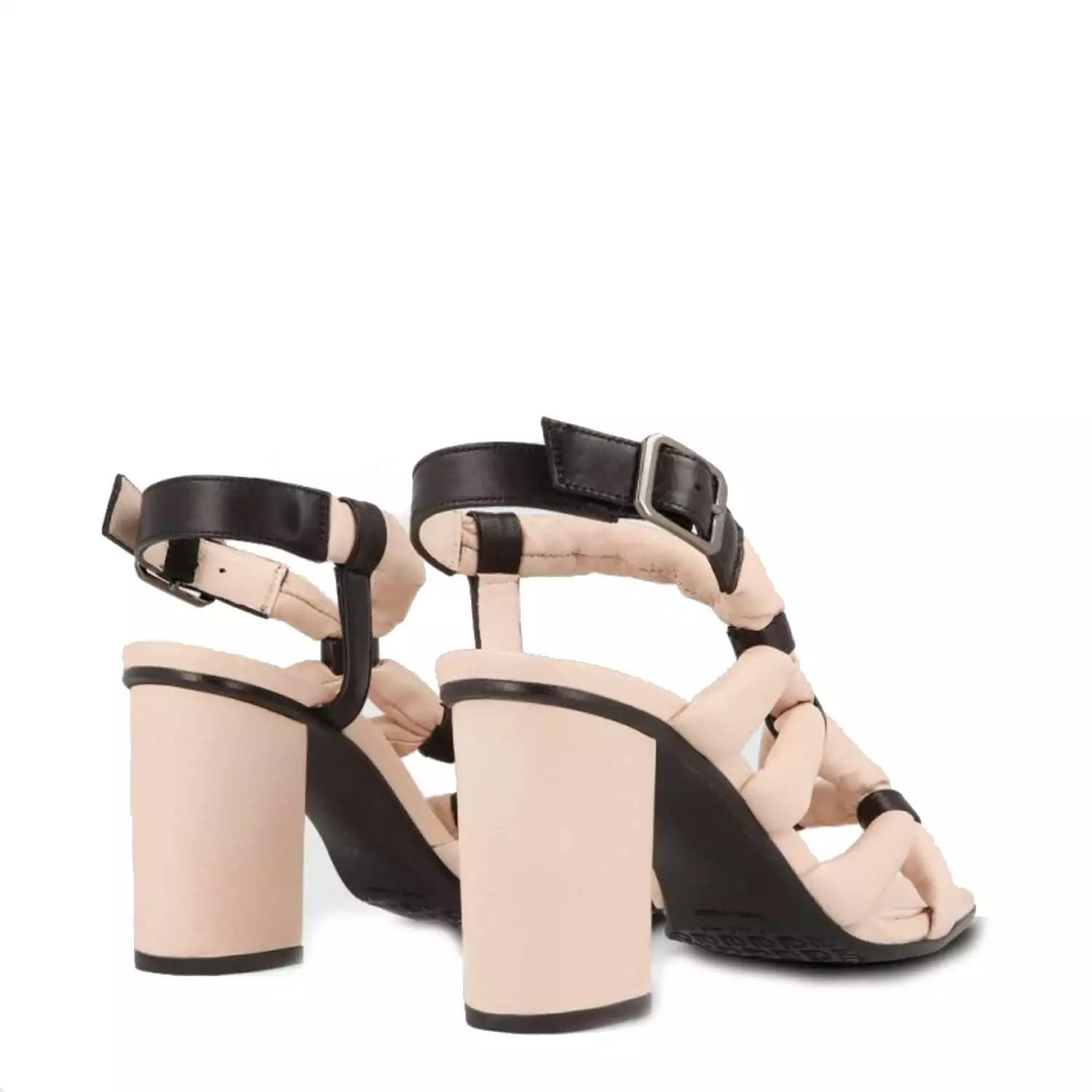 Sandalia de la marca Lodi, modelo Gamboa de color Ecru. Sandalia con tiras tubulares entrelazadas y cierre mediante hebilla. Un diseño confeccionado con tacón de 8.5 cm de altura. Interior forrado en piel. Incluye planta new gel para mayor comodidad en todas tus pisadas. Fabricado en España.
