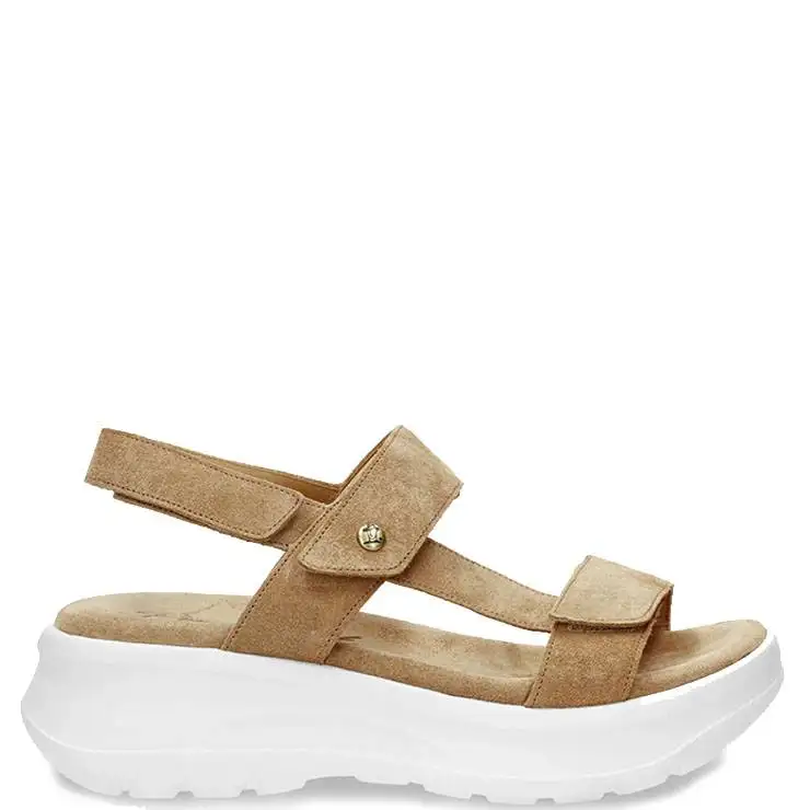 Sandalia deportiva de piel. Cierre ajustable con velcro. Forro interior de Piel. Plantilla anatómica. Suela de poliuretano, flexible y resistente de 5 cm de altura.