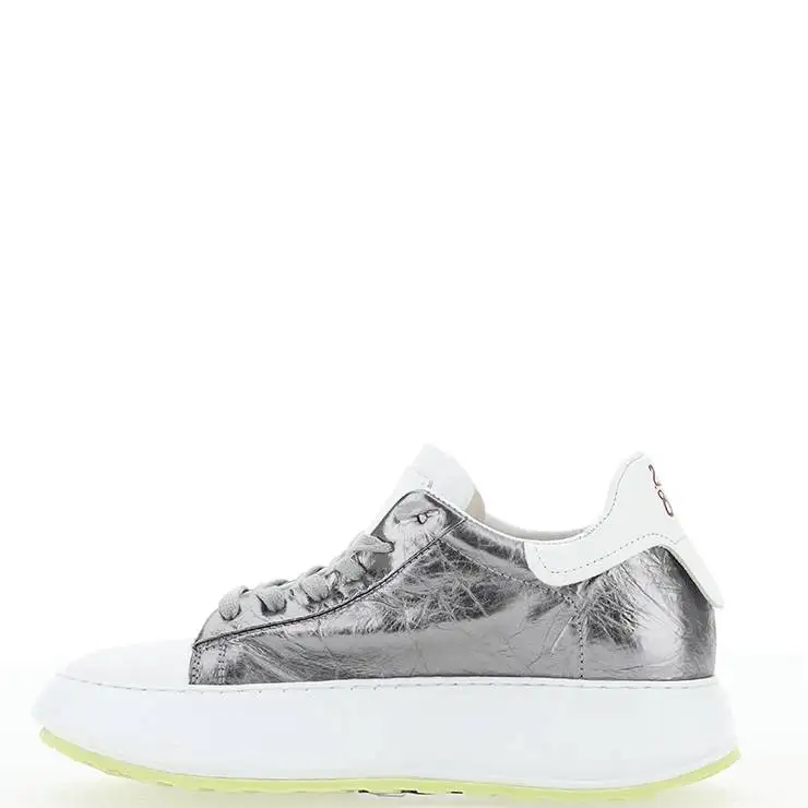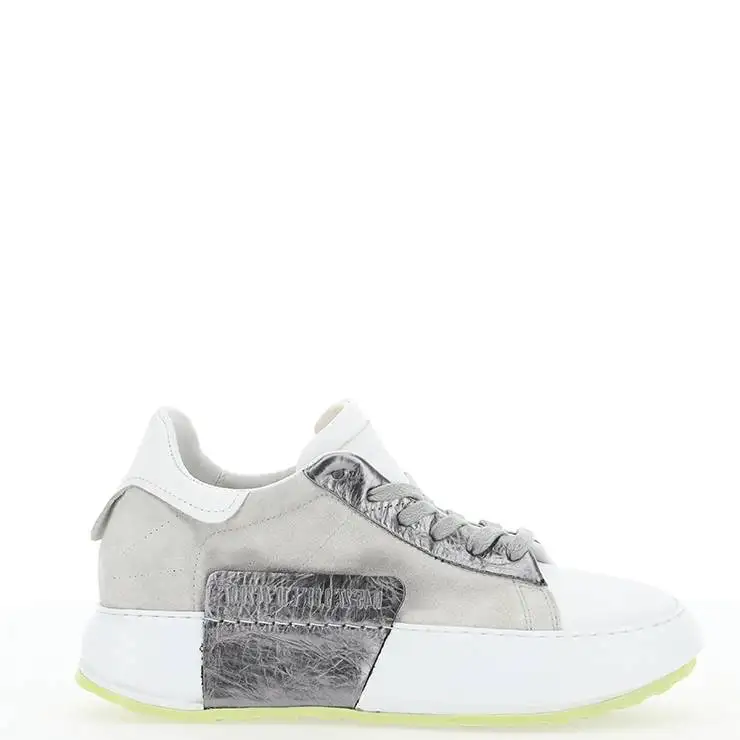 Zapatillas deportivas elaboradas en piel suave en combinación de colores. Suela voluminosa con banda de rodadura de color en contraste. Detalle de coordenadas de la oficina Stile, marca registrada de A.S.98.