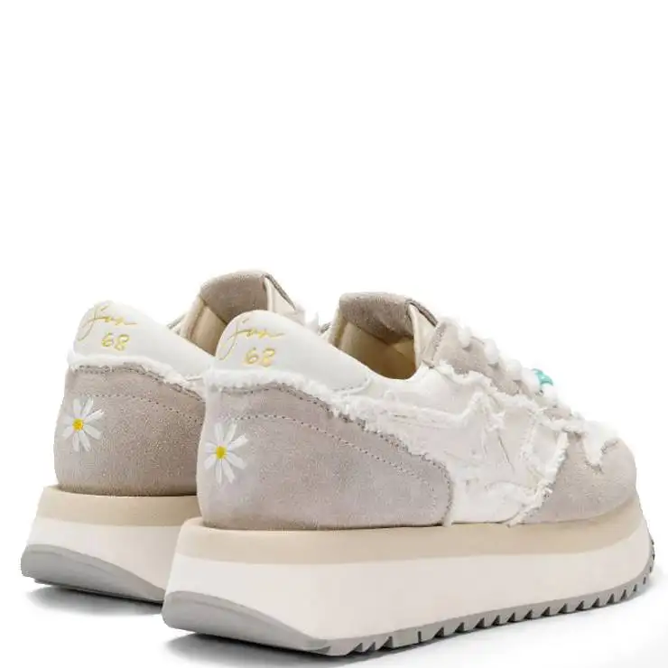 Zapatillas deportivas elaboradas en ante y textil. Ribete con flecos y detalle de abalorio en fluor. Plantilla interna extraíble. Suela de goma con plataforma de 3 cm.