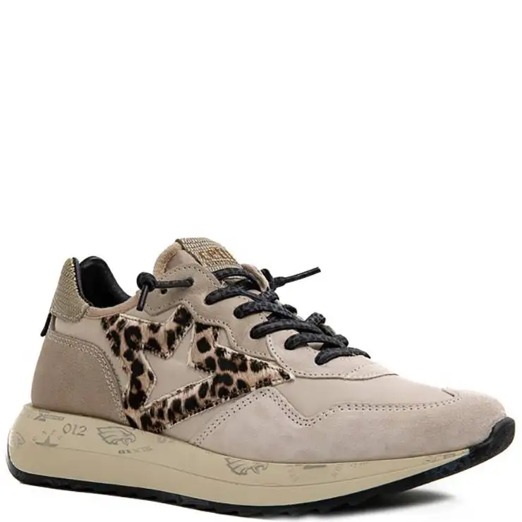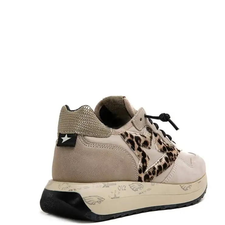 Zapatillas deportivas elaboradas en combinación de piel y tejido con detalle de animal print. Plantilla acolchada. Suela ligera de goma estampada y cierre con cordones elásticos.