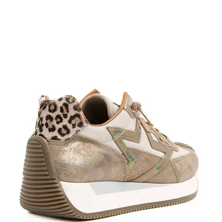 Zapatillas deportivas elaboradas en combinación de piel metalizada y tejido. Plantilla acolchada. Suela ligera de goma y cierre con cordones elásticos.