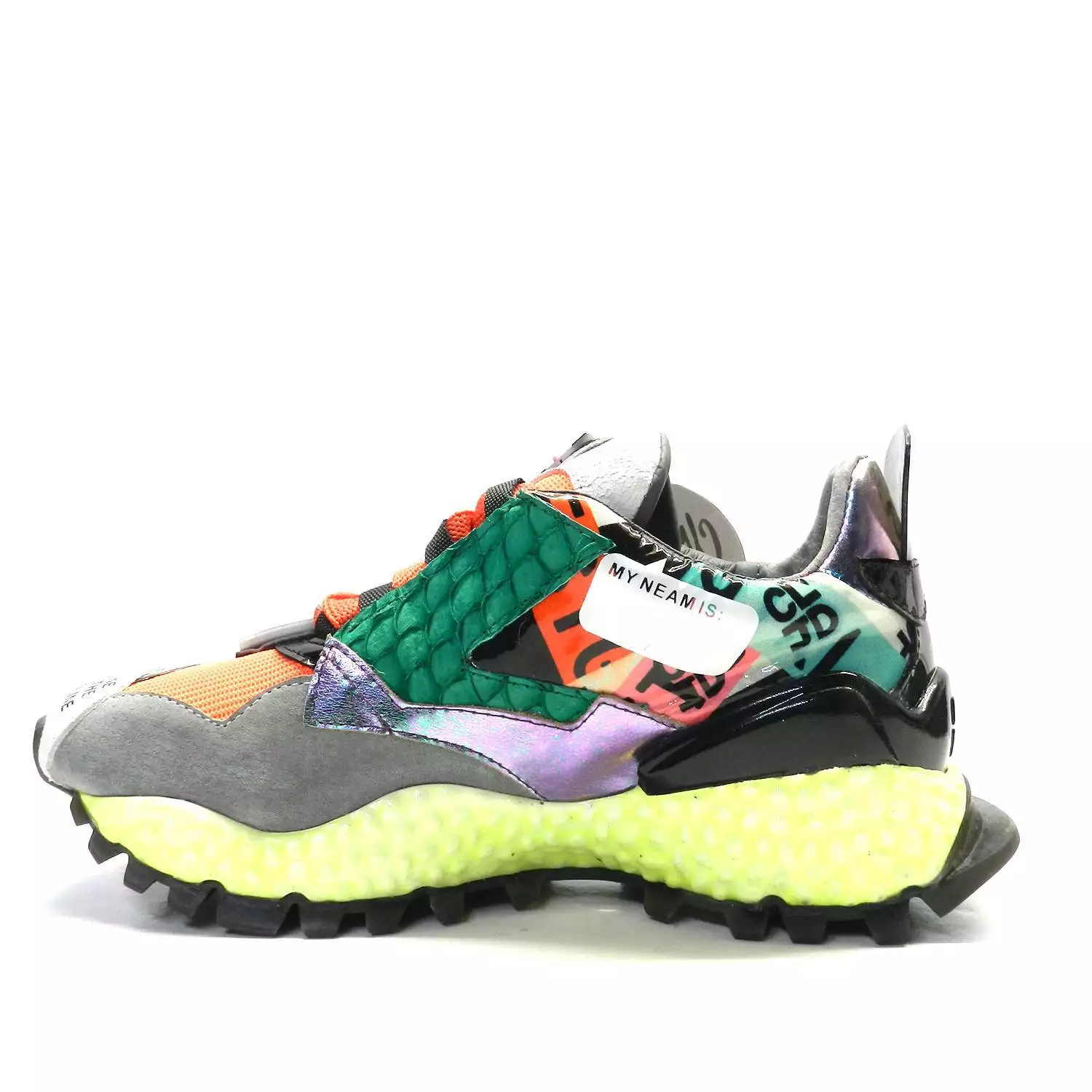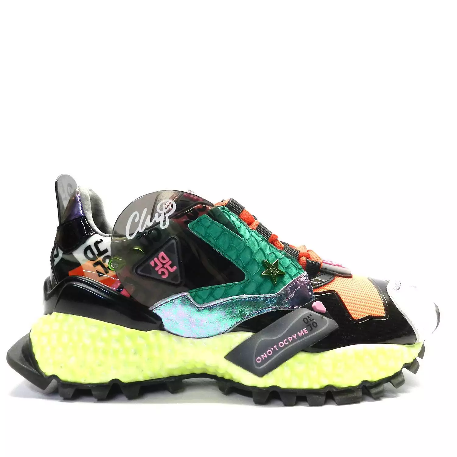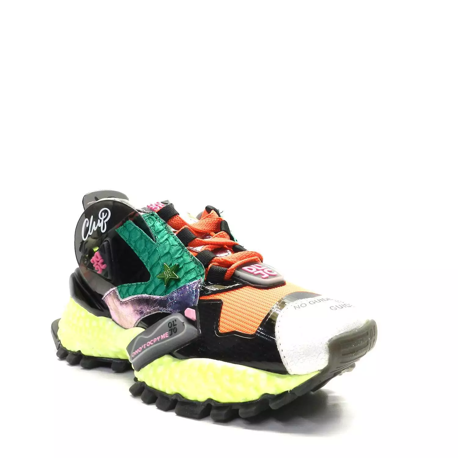 Zapatillas de la marca Exe, modelo 928-1 en color naranja. Zapatillas deportivas elaborada en combinación de diferentes materiales y colores. Original diseño que combina materiales serigrafiados con textil, sintético y piel. En combinación de colores lisos y metalizados destacando el color naranja junto con el negro. Suela de plataforma granulada en color amarillo, suela de goma multitaco en negro. Refuerzo en puntera y talón que sobresale dando estilo a la zapatilla. ¡Perfecta para ir cómoda y chic!