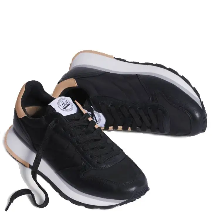 Zapatillas deportivas con cordones elaborada en combinación de piel y tejido. Logotipo en lengüeta y talón. Suela de 3 cm de altura. Plantilla de memory foam extraíble. Patín dentado en goma con detalle de logo.