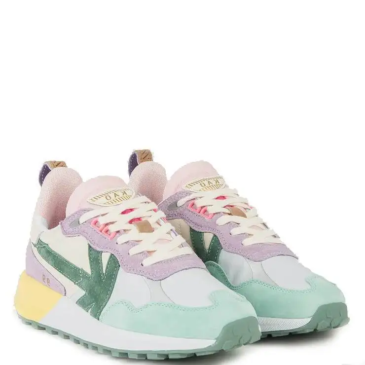 Zapatillas deportivas elaboradas en combinación de piel y textil en diferentes colores. Suela de goma bicolor.