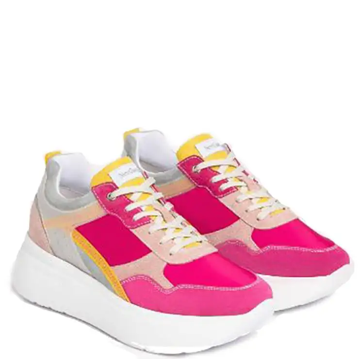 Zapatillas deportivas elaboradas en material textil y piel. Plantilla DryGo!. Suela de goma blanca con plataforma de 5 cm.