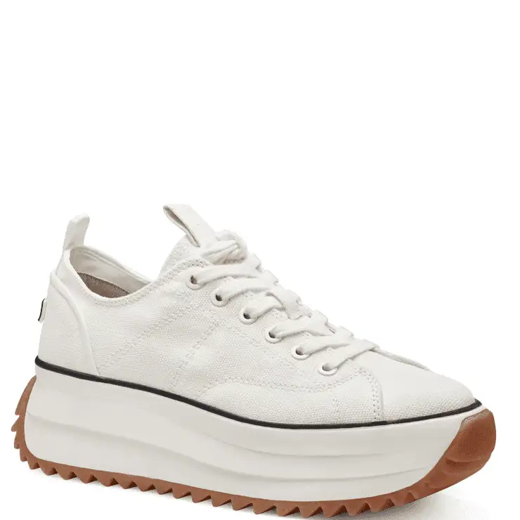 Zapatillas de lona brillante. Suela dentada de goma con doble piso de 5,5 cm de altura. Cierre con cordones. Plantilla con tecnología Touch-It.