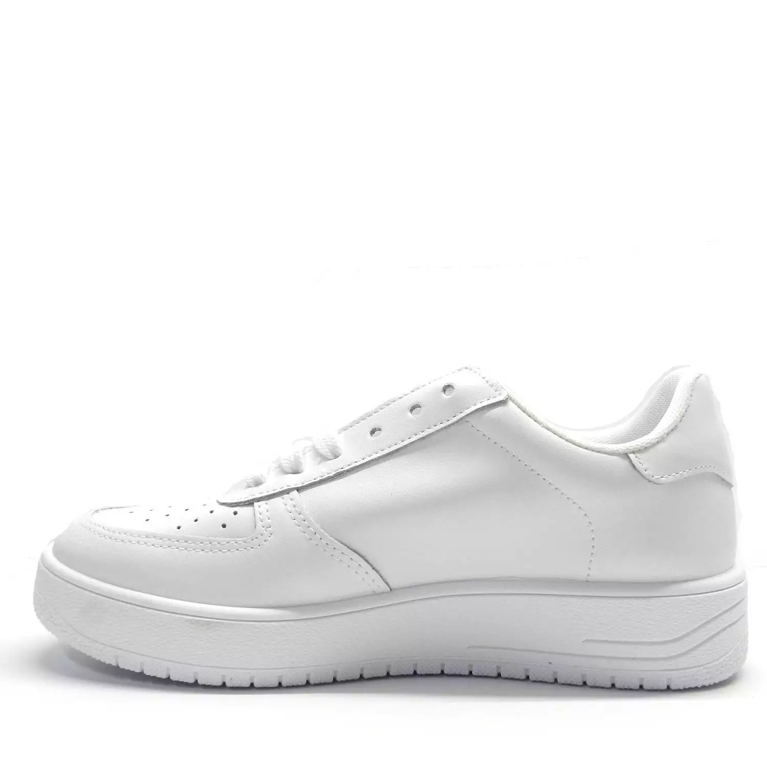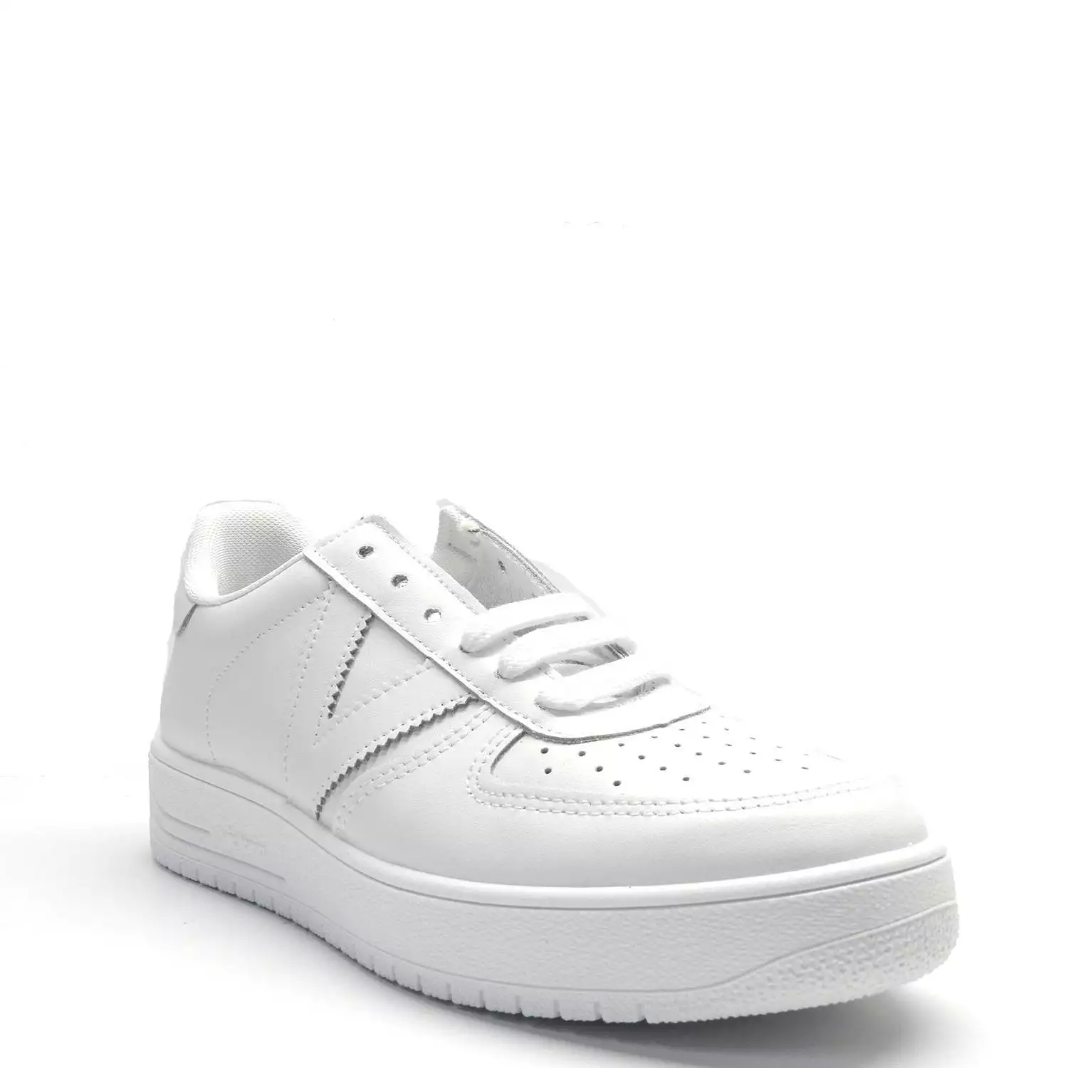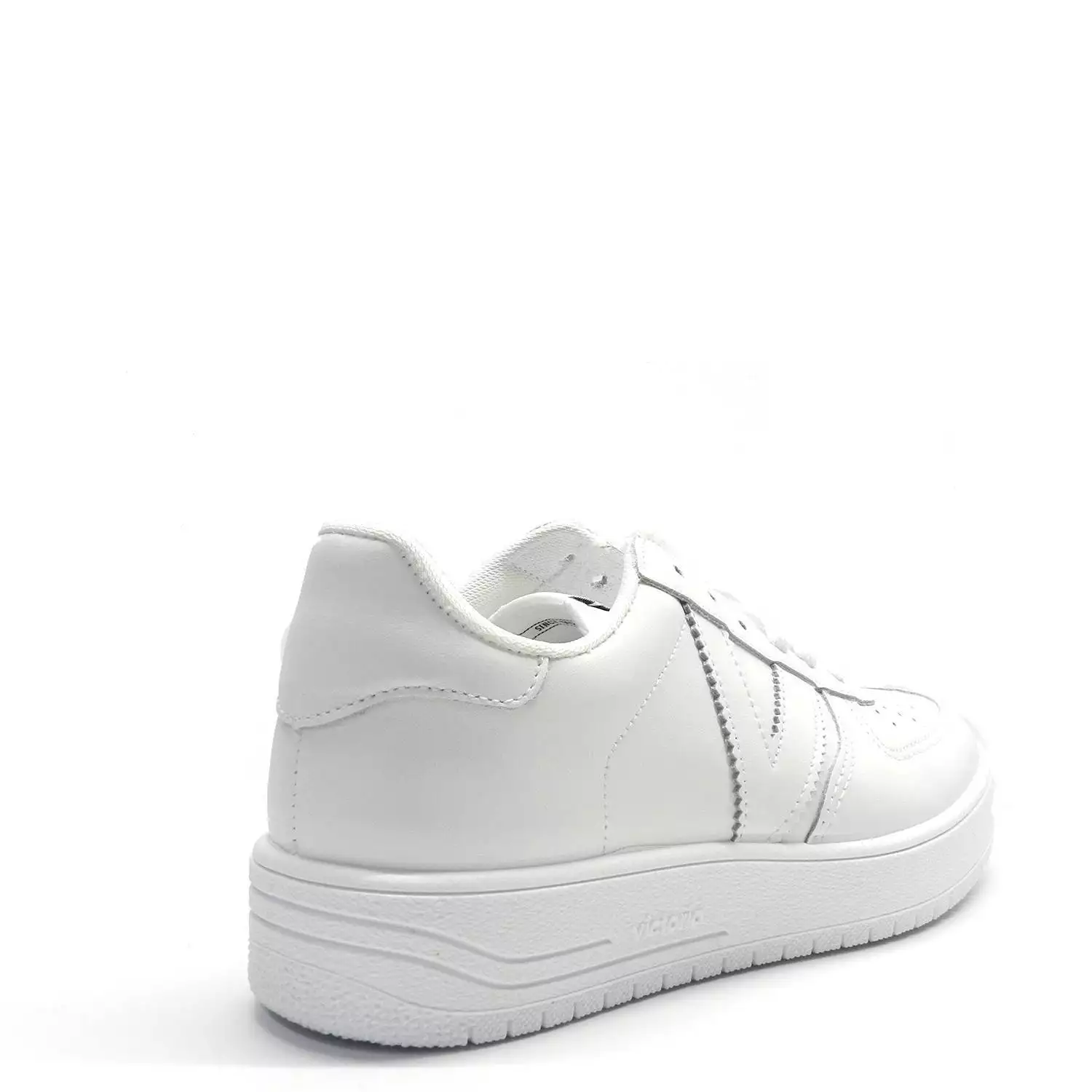 Zapatillas de la marca Victoria, modelo Siempre en color blanco. Zapatillas deportivas de piel, con logo en el lateral y puntera perforada para favorecer la transpiración. Suela gruesa de gran comodidad.