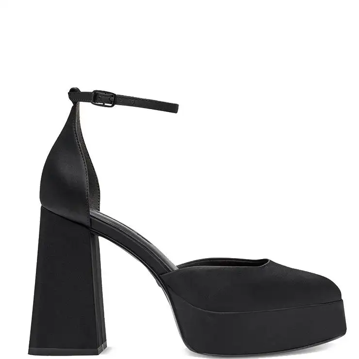 Zapato de tacón elaborado en textil. Tacón de bloque de 9,5 cm de altura. Cierre con fina pulsera con hebilla en el tobillo. Suela de goma con plataforma de 2cm de altura. Incorpora tecnología Touch-it que se adapta perfectamente a la forma del pie.